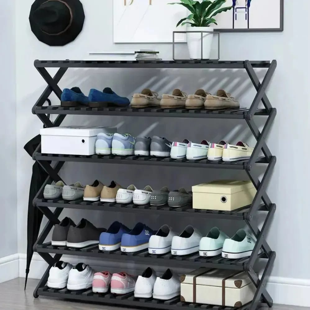 6-Tier Black Bamboo Shoe Rack stand / Multifunctional Organizer ♦️ Size:100*113*25 ♦️ Foldable and portable shoe rack ♦️ Sturdy and durable ♦️ can be used to organize shoes,books also displaying flowers and plants ♦️ Material :Bamboo ♦️ color: Black and natural color ♦️ Free installation household