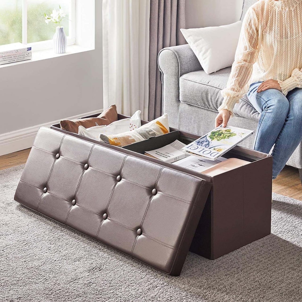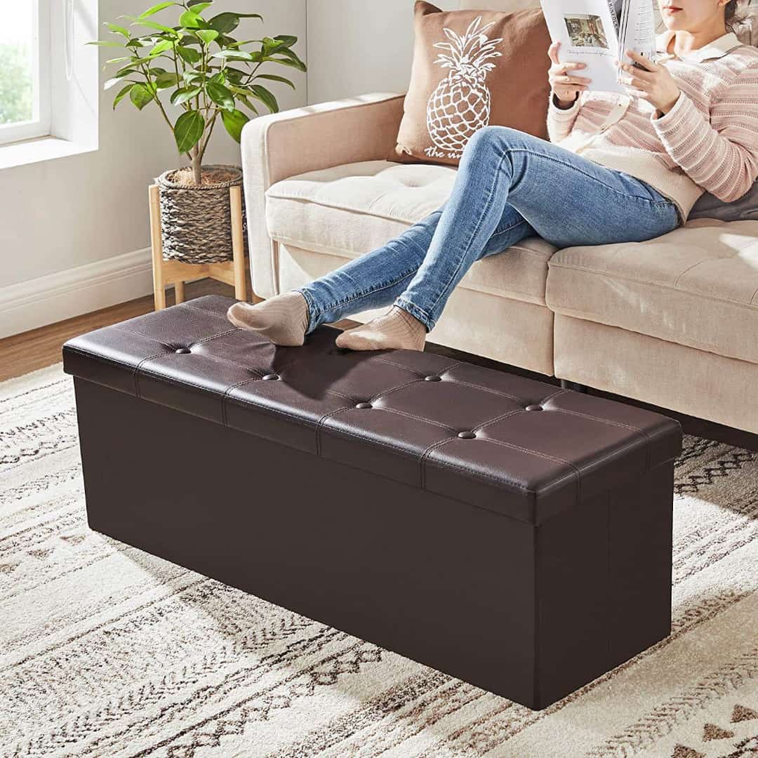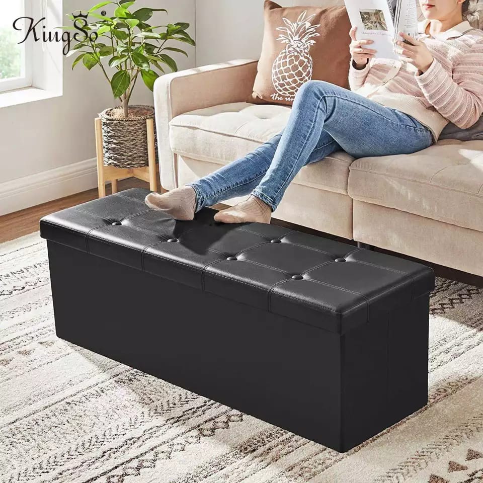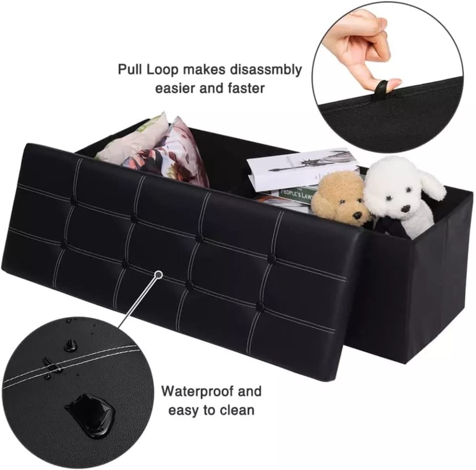 FOLDING OTTOMAN STORAGE BOX material: leatherwear size:110*38*38cm modern leather sofa storage box storage stool ottoman sofa foot rest stool seat chair bench large storage box for beddings,clothes,toys design with a waterproof resistant base to preserve product Colors:Black, brown,white