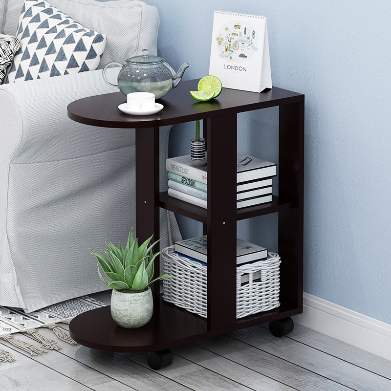 Moveable Side Coffee Table Wooden Coffee Tea Table for Living Room Sofa Bed Beside Small Dining Reading Table with 2 Layer Shelves