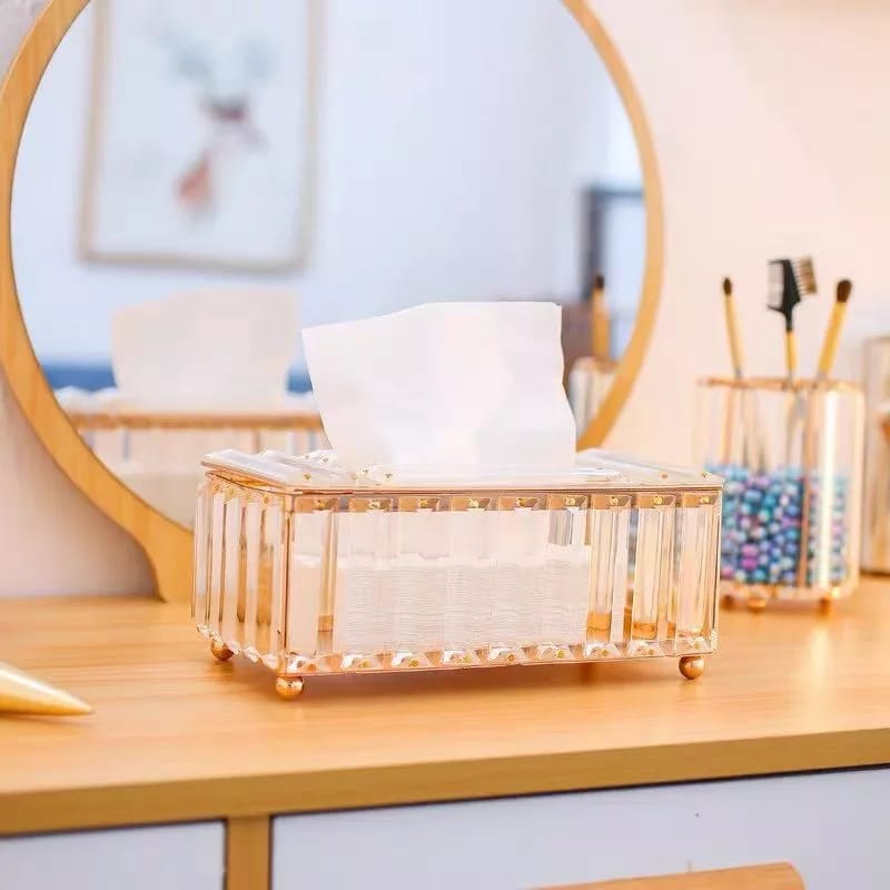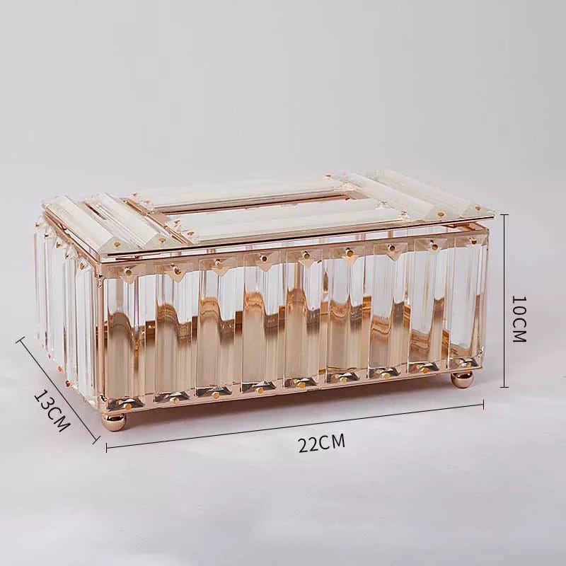 More luxurious and beautiful than ordinary tissue boxes; The popular crystal glass in Northern Europe, fresh and elegant style; Material: crystal glass Color: gold Size: 21x8x12cm